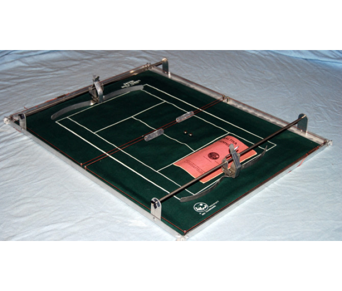 The Playing Court is a Felt/Canvas Material which is attached to a metal frame. The Playing Bats which are curved on either side to simulate forward and backhands slide on rods which are fitted to the Metal Frame allowing you to move freely across the court
